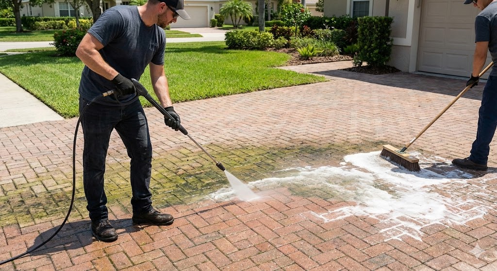 Czyszczenie kostki brukowej, tarasów, podjazdów
